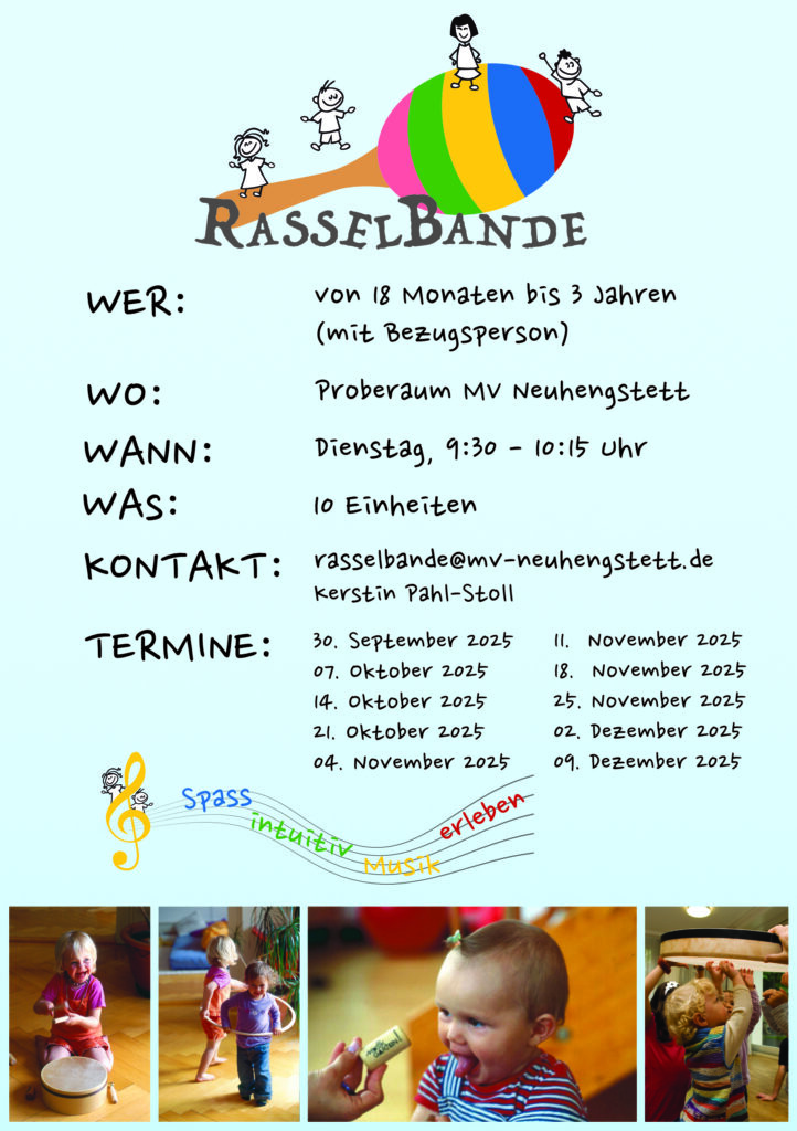 Im Beisein eines Erziehungsberechtigten erleben die Kinder Klanggeschichten und lernen gemeinsam Lieder und Tänze.